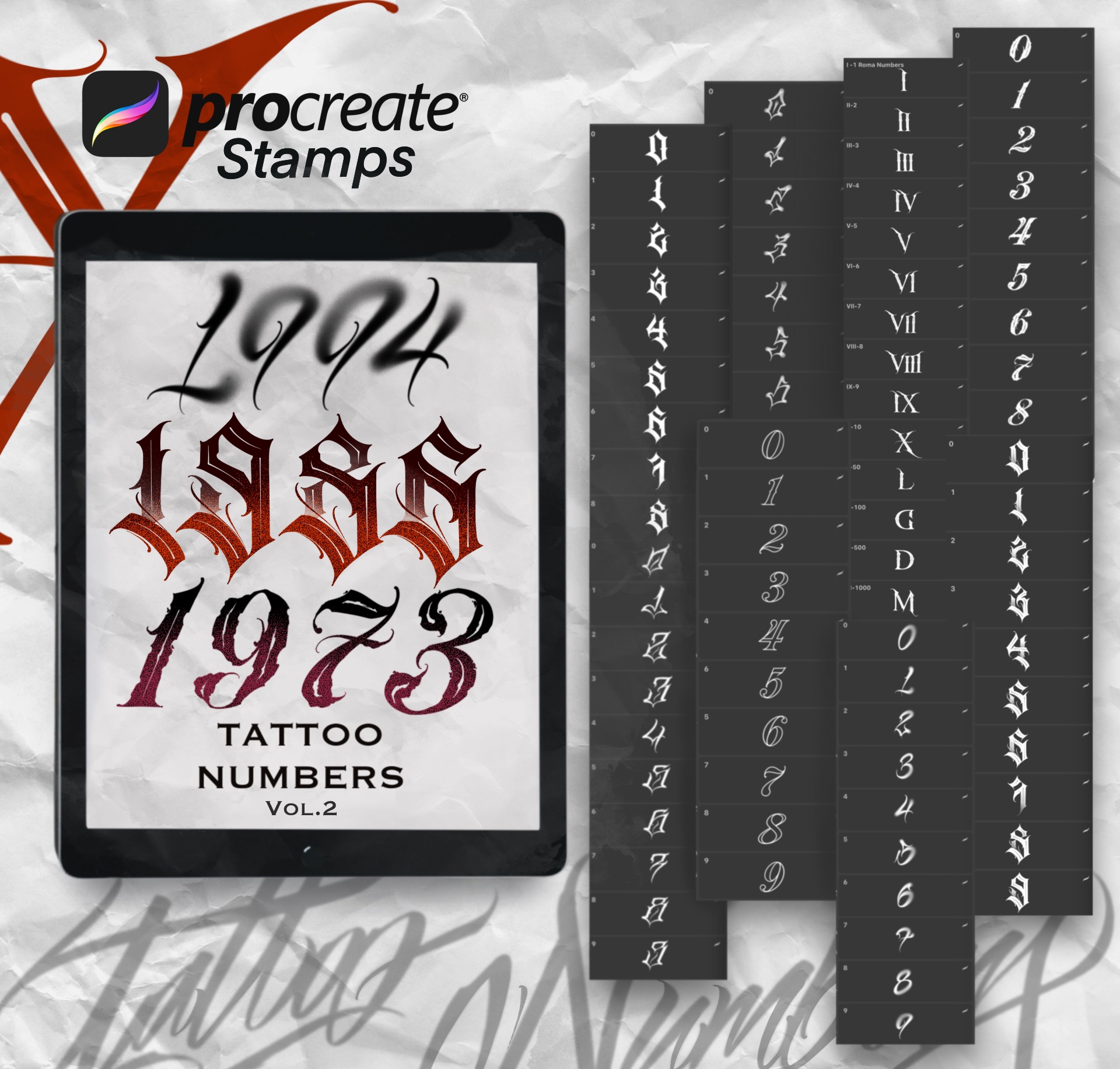 Tattoo Numbers for Procreate Vol 2