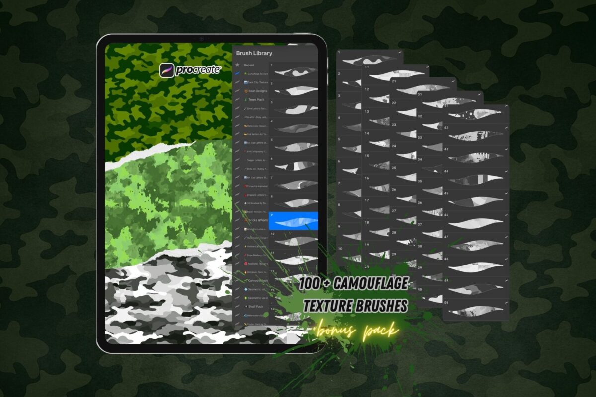 100 Camouflage Texture Brushes For Procreate
