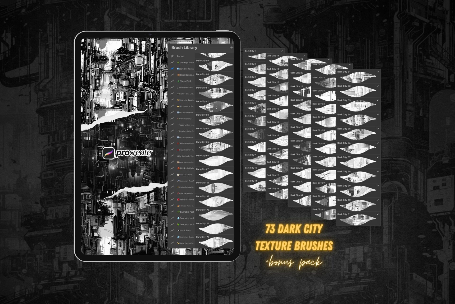 73 Dark City Texture Brushes for Procreate